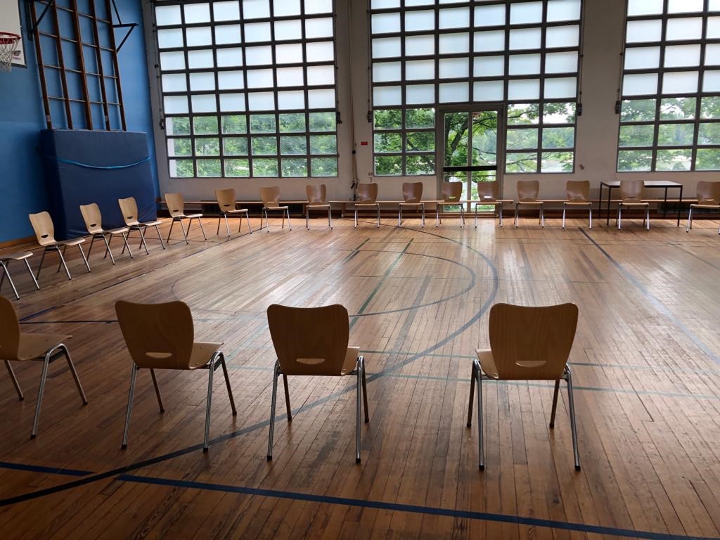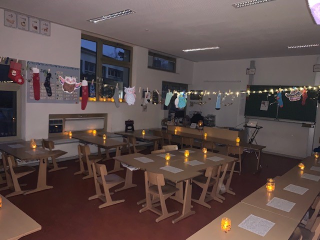 Das offene Atrium ist der Mittelpunkt der Schule. Bei gutem Wetter finden in diesem Outdoor-Klassenzimmer zum Bespiel gemeinsame Unterrichtsreflexionen statt oder das Schülerparlament tauscht sich über gemeinsame Themen aus. Auch das Erwachsenen-Schulteam trifft sich gerne bei gutem Wetter für eine Pause im Atrium. Der wunderschöne Blick auf den Rhein zieht jeden Menschen an und schafft ein Gefühl von Gemeinschaft, Zusammenhalt und Stärke. Gemeinsam gefeiert wurde hier übrigens auch schon 😉.